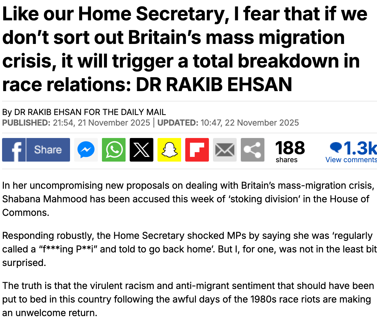 A much better, but harder, way to resolve that cognitive dissonance is to consistently separate ideas from people and aim resentment and critique at adherents to the sets of ideas one sees as presenting societal problems rather than demographics defined by immutable characteristics. That is, to avoid falling into the trap of collectivism. This is also the only way to effectively address problems as they really are and at their source. This is the stance of Rakib Ehsan, researcher on migration, in the piece cited above. In it, he points out that 45% of black Brits and 50% of Asian ones also believe immigration is too high. In my time helping people address authoritarian Critical Social Justice problems in their workplace, I also found black and brown Brits to be overrepresented among those wishing to push back allegedly anti-racist policies and training programmes. They were more likely to recognise these as unhelpful to the cause of good race relations and they were clearly right.