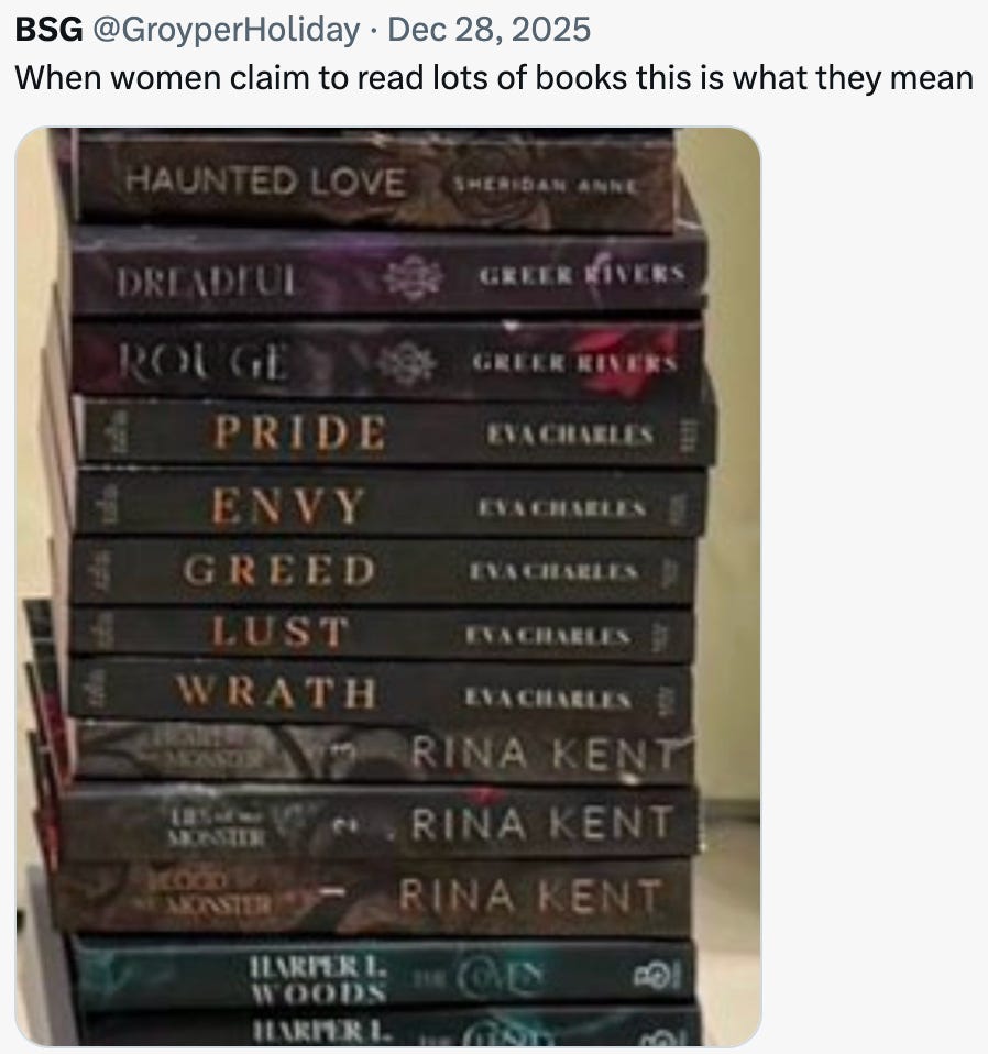 This post got 10,000 comments and 15,000 retweets, many with comments, most of them negative. A lot of people seem unreasonably angry with a young woman being proud of having read so many works of light fiction, romantic fiction and erotic fiction. If it were simply that they were not impressed by this accomplishment, why not scroll past? Why the need to criticise her and try to make her feel ashamed of being proud of that? People are forever achieving things we ourselves do not want to achieve, but we do not typically feel the need to tear them down for it. This is clearly not a neutral issue of life goals but a deeply moral issue for many. Why?