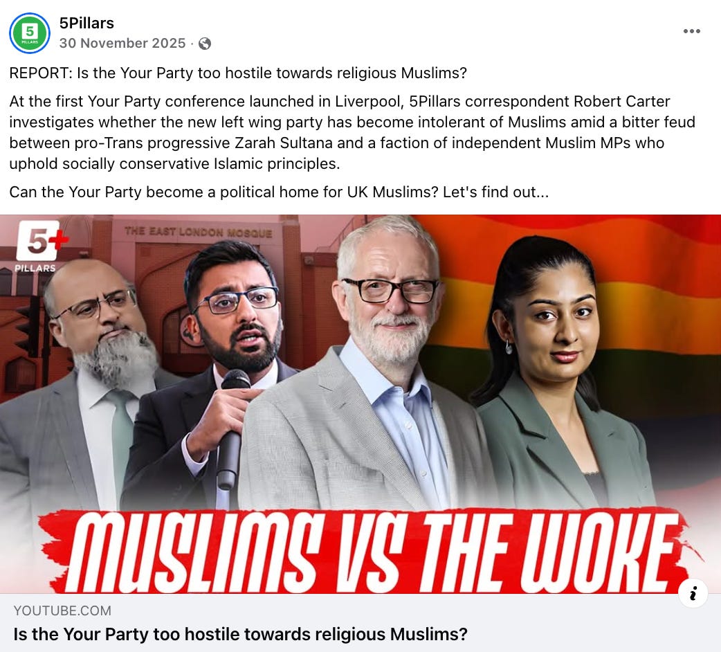 This then results in extreme confusion, especially when people who want to support queer and trans activism crash up against those who believe in rigid gender roles and the moral unacceptability of homosexuality. This is what caused the chaos among Your Party members when Zarah Sultana declared that there was no room for socially conservative views within a socialist left-wing party and Adnan Hussain and Iqbal Mohamed left.