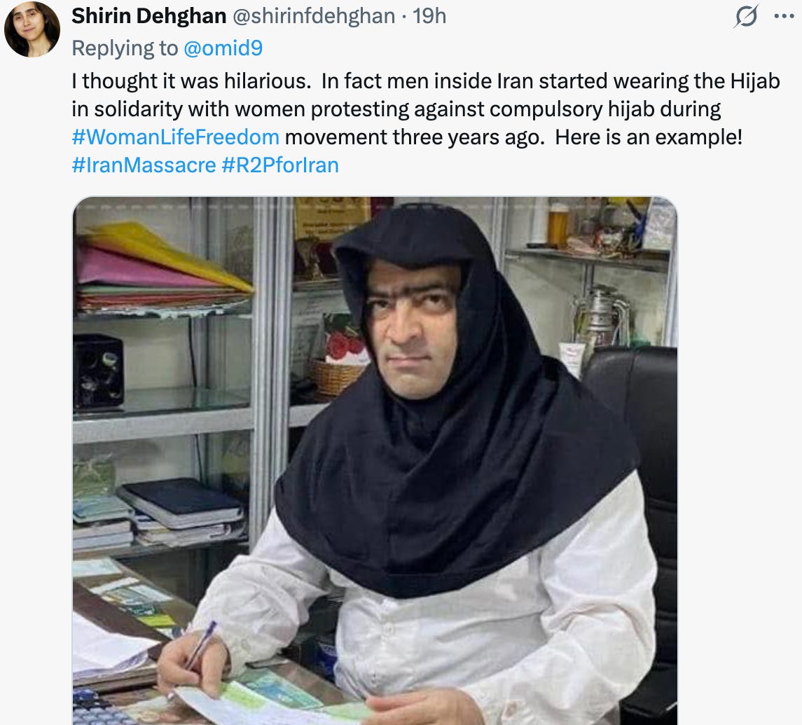 Calling the AI image Islamophobic or bigoted makes little sense. If the hijab is simply an expression of faith, why should men not wear it? Muslim and ex-Muslim feminists and women’s rights activists have consistently made an argument that, if the hijab is just an expression of honouring the Muslim faith, Muslim men should have absolutely no problem wearing it themselves. The challenge exposes the inequality at its core. The reality is that the hijab is not just a manifestation of religious faith but a sex-specific modesty code which burdens women with a responsibility for modesty that is not applied to men. Several people pointed out that genuinely progressive men in Iran who support the equality of women have been protesting by putting the hijab on as women protested by taking it off.