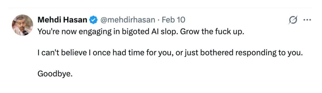 Good post Helen. If I'm honest you could have saved a lot of effort by just noting - correctly - that Mehdi Hasan is a bad-faith-debating obnoxious arsehole and has been for decades, and leaving it at that. However, I salute your desire to be through and academic.