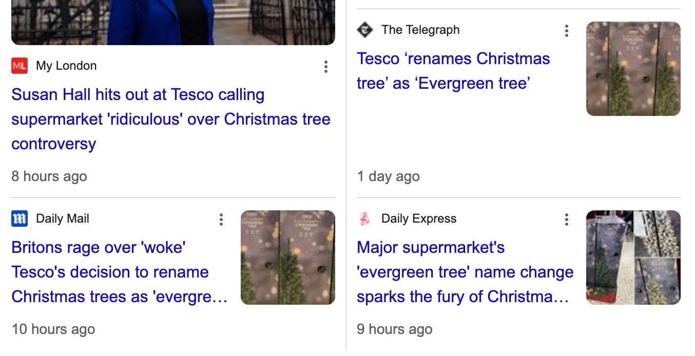 At the root of the issue here is a manifestation of a much broader cultural anxiety bordering on paranoia around immigration, Islam and the Critical Social Justice (woke) movement. Tesco has labelled its trees this way before and received some criticism for this but not on this scale. Mainstream newspapers are addressing the issue.