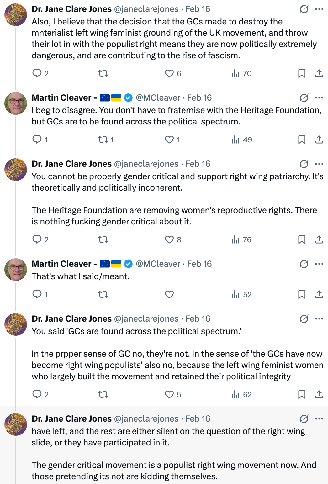 The gender critical movement more broadly is illiberal when it attempts to cancel and penalise people for their language and clothing choices and engages in homophobic and racist rhetoric. Principled gender critical feminists who object to authoritarianism consistently and actively support gender nonconformity and same sex attraction have been in the forefront of opposing this development. It remains essential to distinguish between gender conservatives who adopt the ‘gender critical’ label alongside (often radical) culturally conservative views, and left-wing gender-critical feminists working within a progressive, materialist framework. The people most likely to blur this distinction are the ‘genderqueer’ activists.
