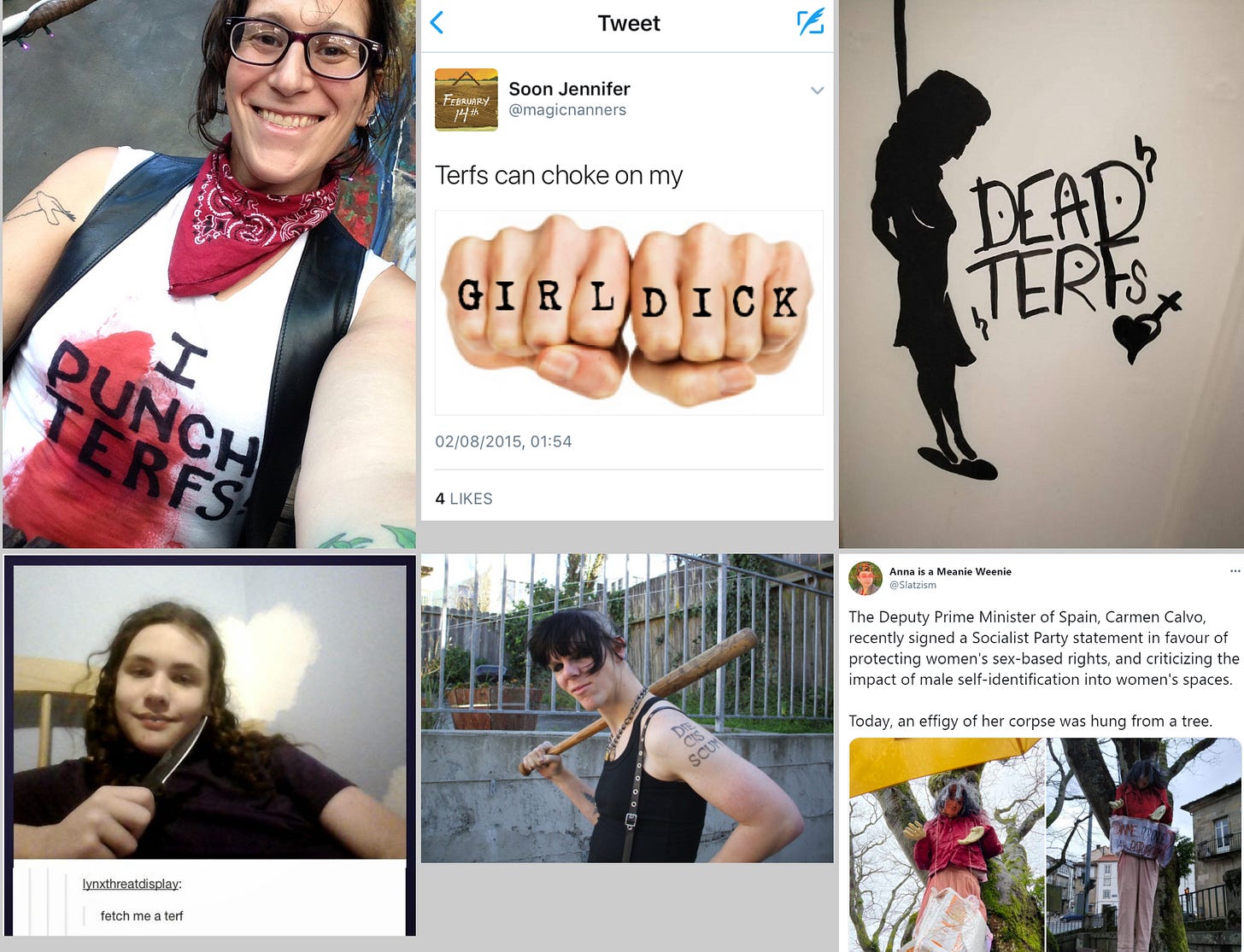 Trans activists have been particularly aggressive and even violent and their primary targets have been gender critical feminists. The website “TerfIsASlur” has been documenting this.